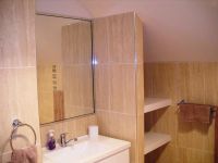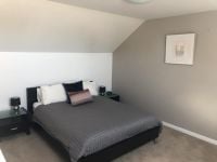 Upstairs features a generous sized bedroom with TV and a separate bathroom.